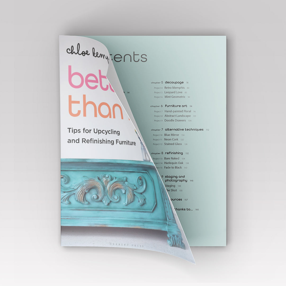 Through my work as a furniture artist, I was given the opportunity of dreams recently to write a book all about my passion. It was a 2 year challenge and a real labour of love creating this beautifully illustrated guide to upcycling, refinishing and restoration; but it’s so exciting to finally be able to share these pages with everyone. If you have ever wondered how I get my inspiration for furniture projects or are up for the challenge yourself, this book offers inspiration and advice both to keen beginners and those wanting to expand their existing skills. I hope you LOVE it!