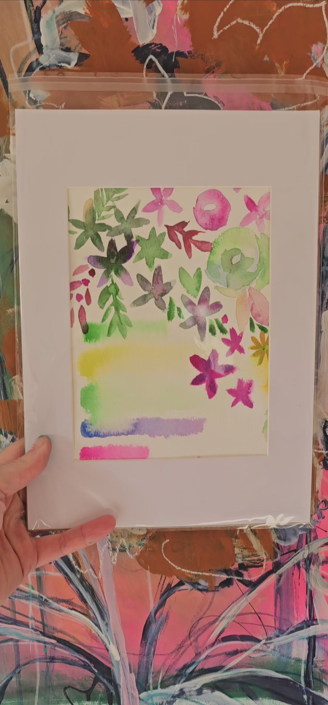'Rainbow Floral' Watercolour on thick paper, edged with a white mount;