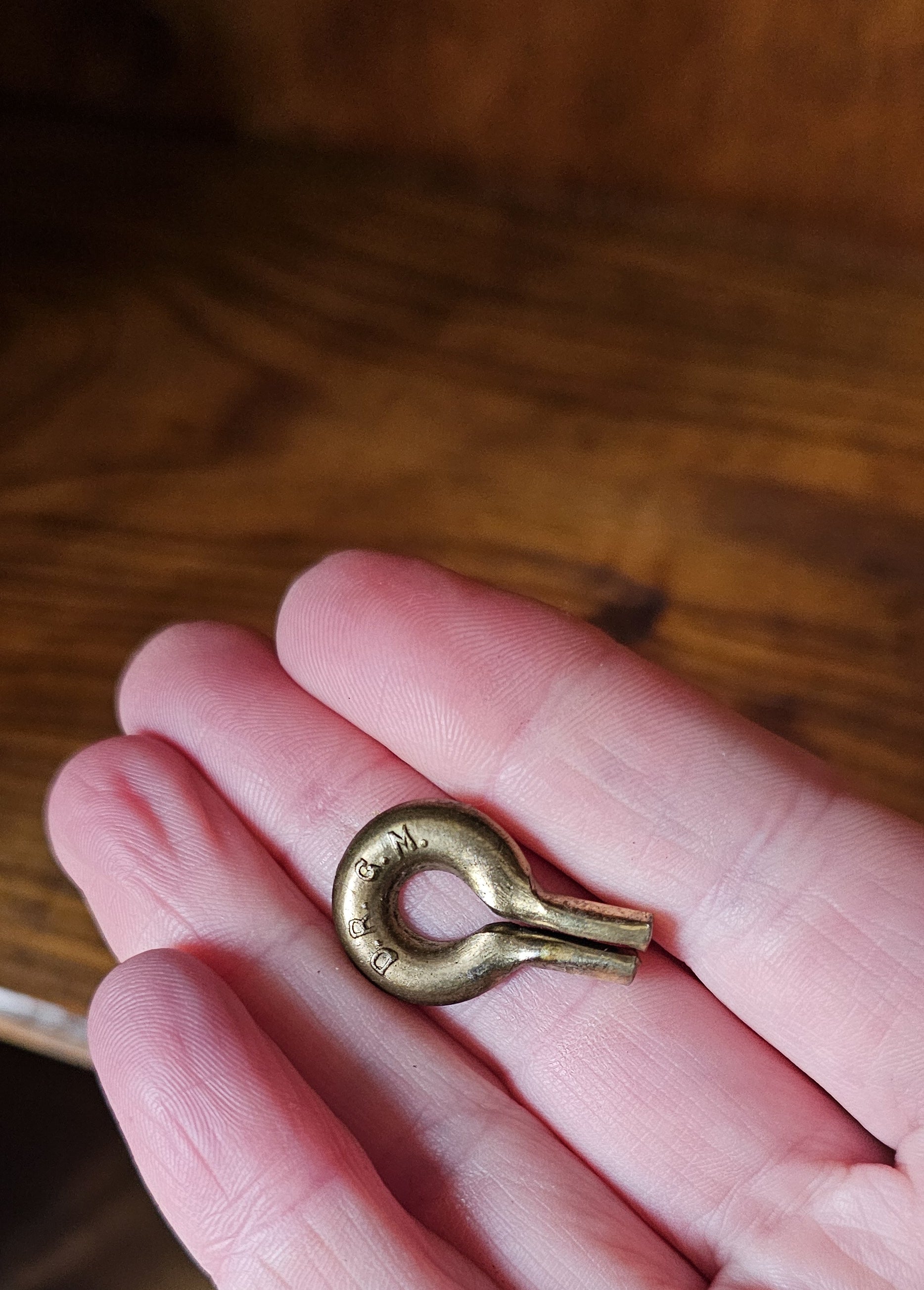 I believe it to be a piece of German Utility furniture made during the war as it features handmade brass brackets with the makers mark g.w.r.m as pictured. This is a German maker who created mostly clocks and tools.